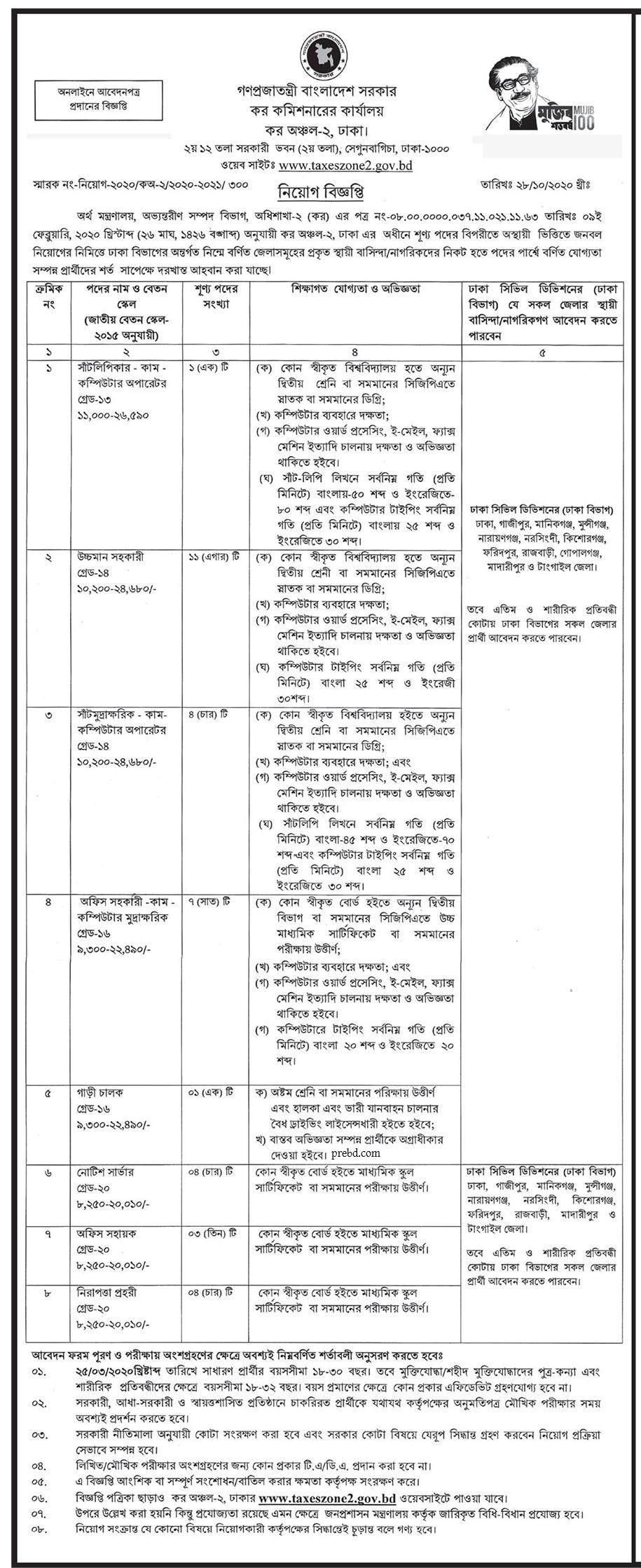 প্রতিষ্ঠানঃ কর কমিশনারের কার্যালয়, কর অঞ্চল-২ ঢাকা