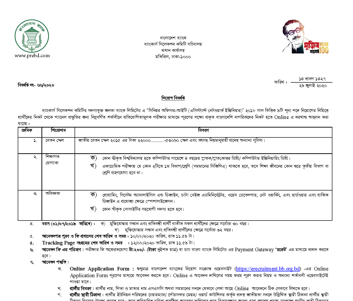 আবেদনের শেষ তারিখঃ ১০ আগস্ট ২০২০