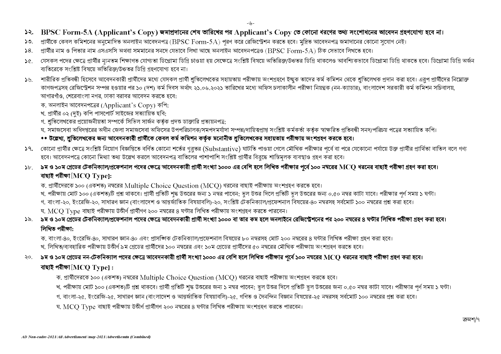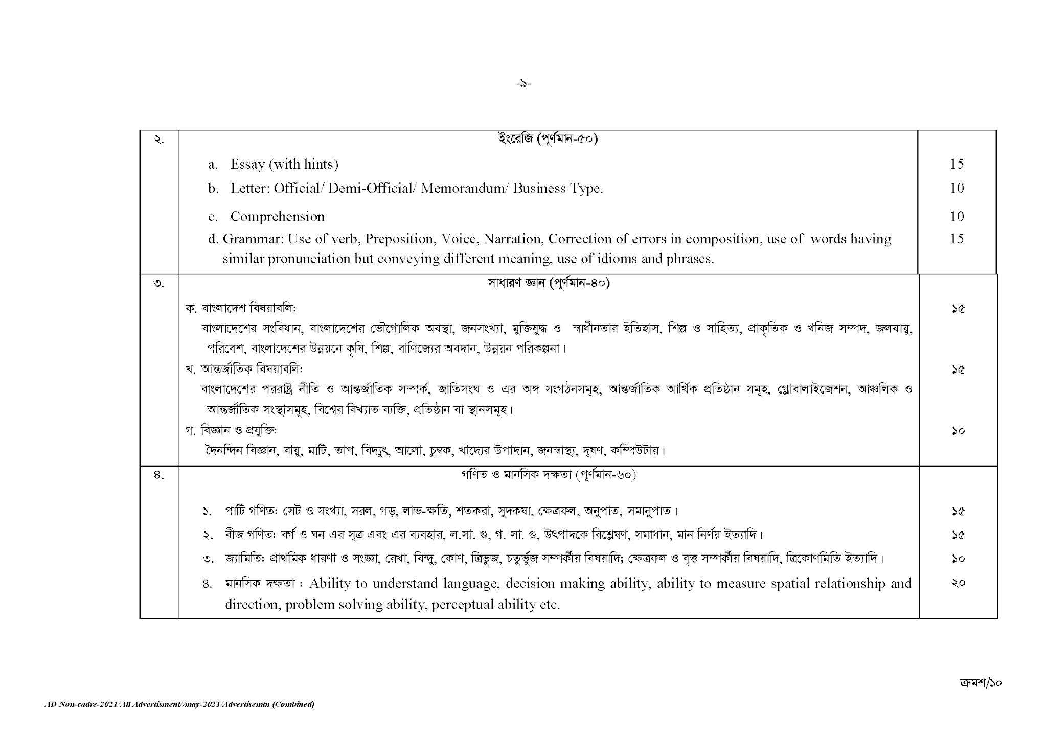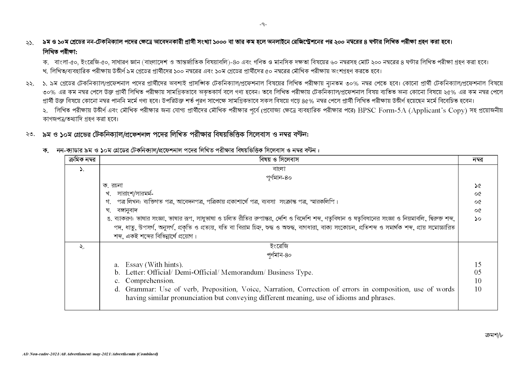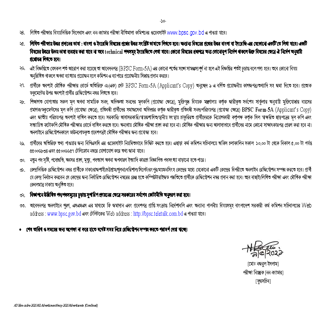 পরীক্ষার নিয়ন্ত্রক(নন-ক্যাডার), বাংলাদেশ সরকারী কর্ম কমিশন সচিবালয়, ঢাকা, নিম্নলিখিত পদসমূহে সরাসরি