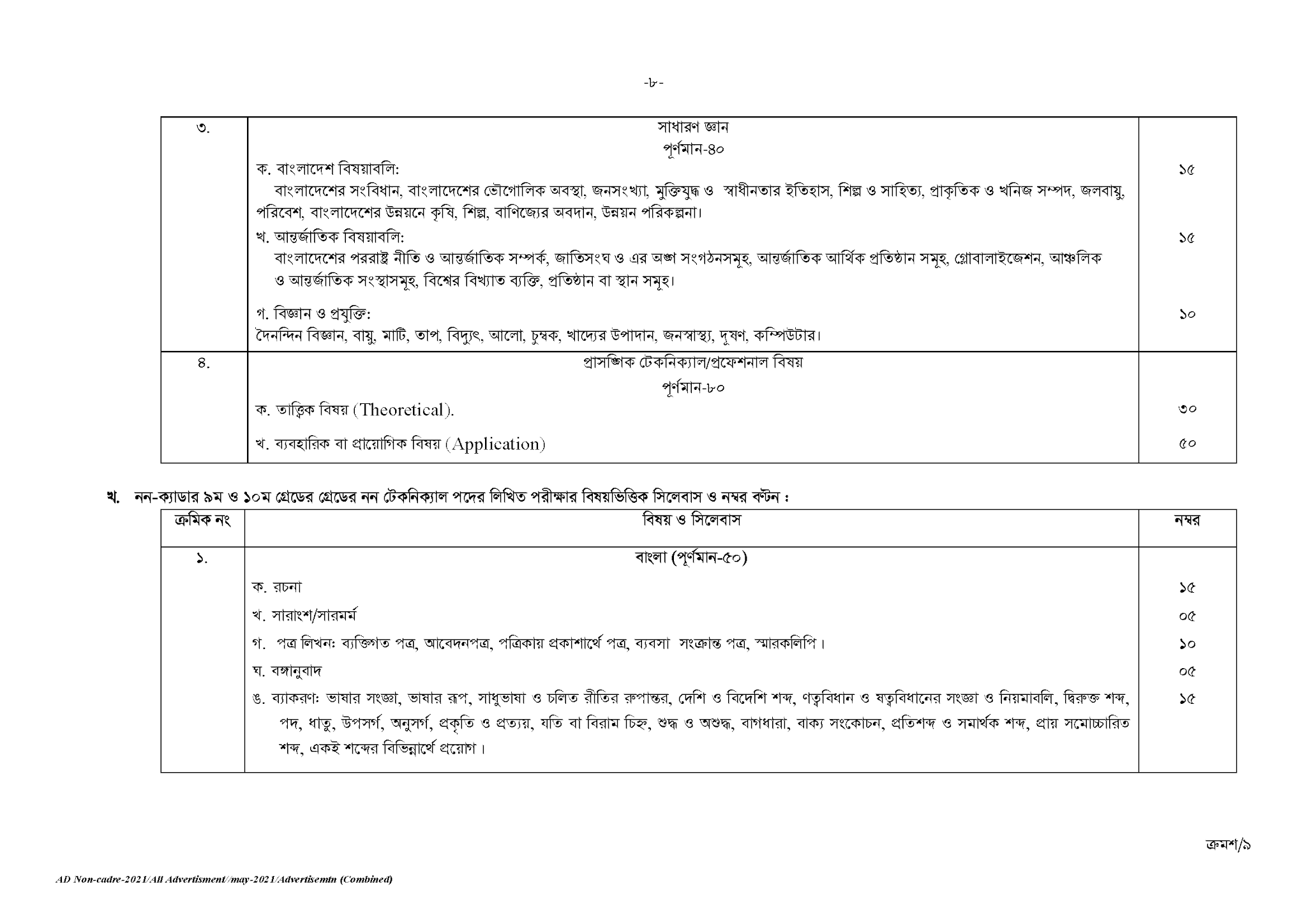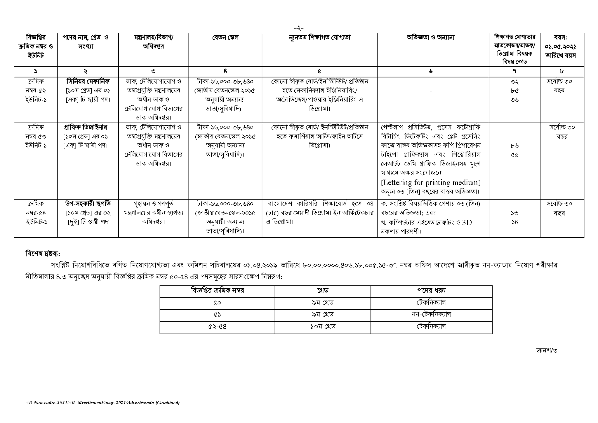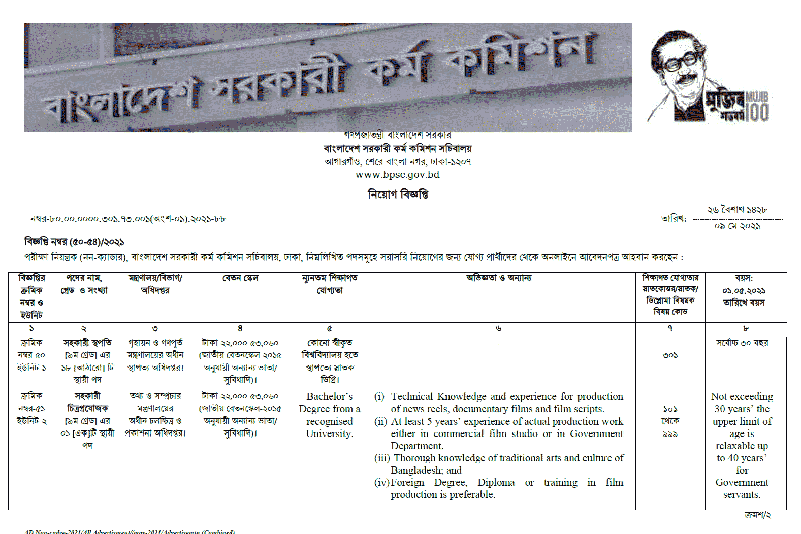 বিজ্ঞপ্তি নম্বর(৫০-৫৪)/২০২১