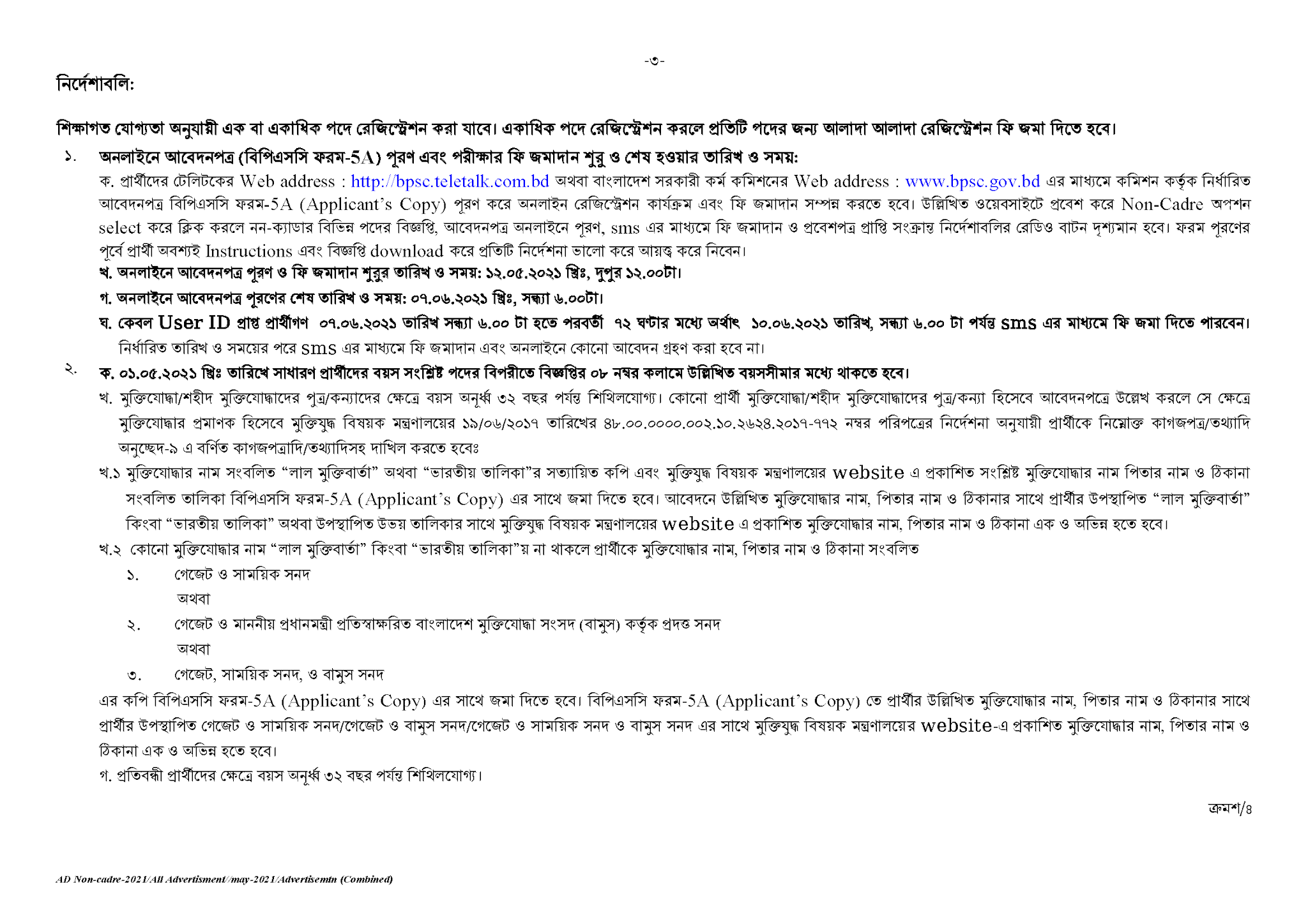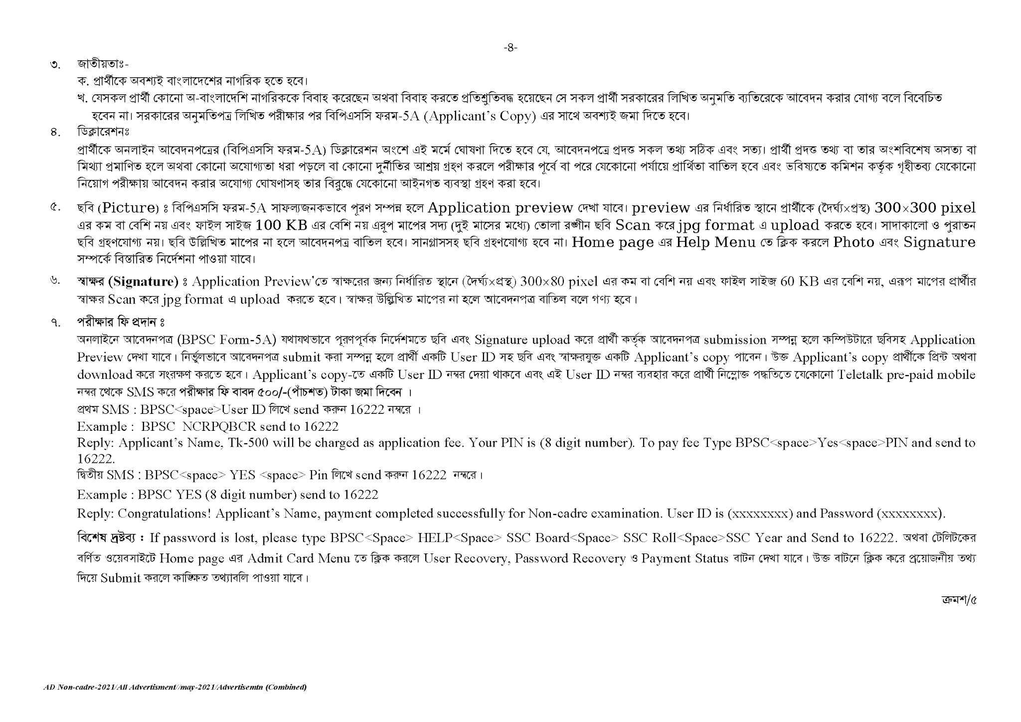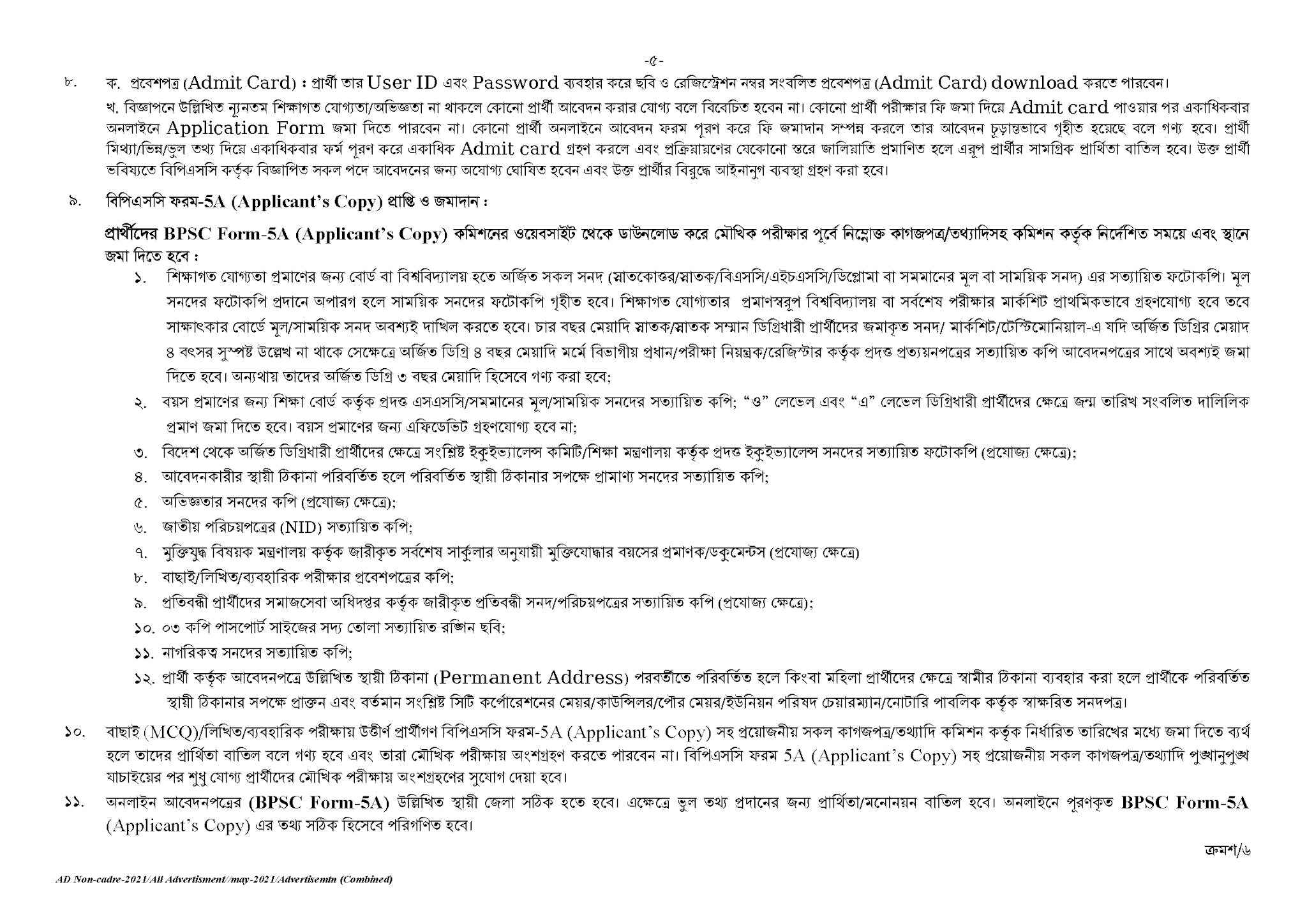 বিজ্ঞপ্তি নম্বর(৫০-৫৪)/২০২১