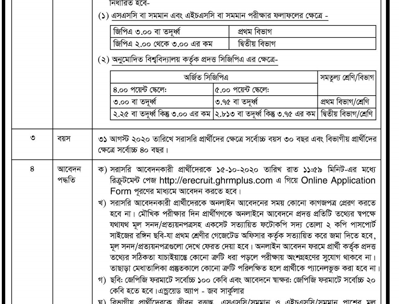 আবেদনের শেষ তারিখঃ ১৫ অক্টোবর ২০২০